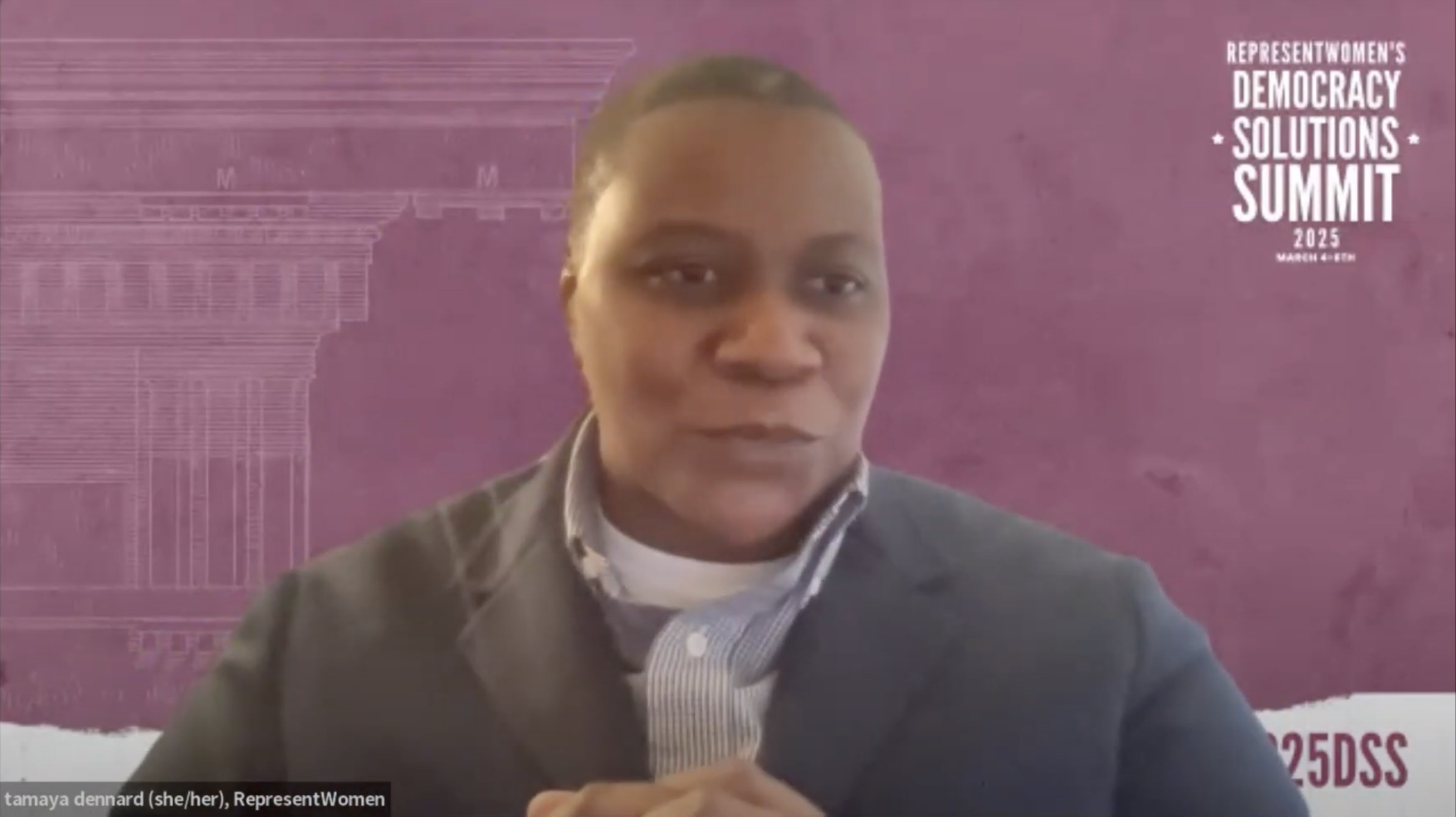 RepresentWomen’s Tamaya Dard, Program & Partnerships Manager, emceed the day, reminding attendees that DSS was created because too many democracy summits feature only men. “Cynthia stopped asking for a seat at the table and built her own,” she said, highlighting how the Summit centers women-led reforms to help women run, win, serve, and lead.