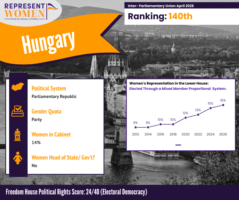 At RepresentWomen, we know that the rules and systems governing who holds power determine outcomes for everyone, and that when those systems are captured by leaders who view women's equality as a threat, the damage extends far beyond any single election cycle. Hungary's result is a reminder that democratic backsliding is never inevitable, and neither is progress. The work of building systems that include and protect women's political power has to happen before the strongman arrives, not after.