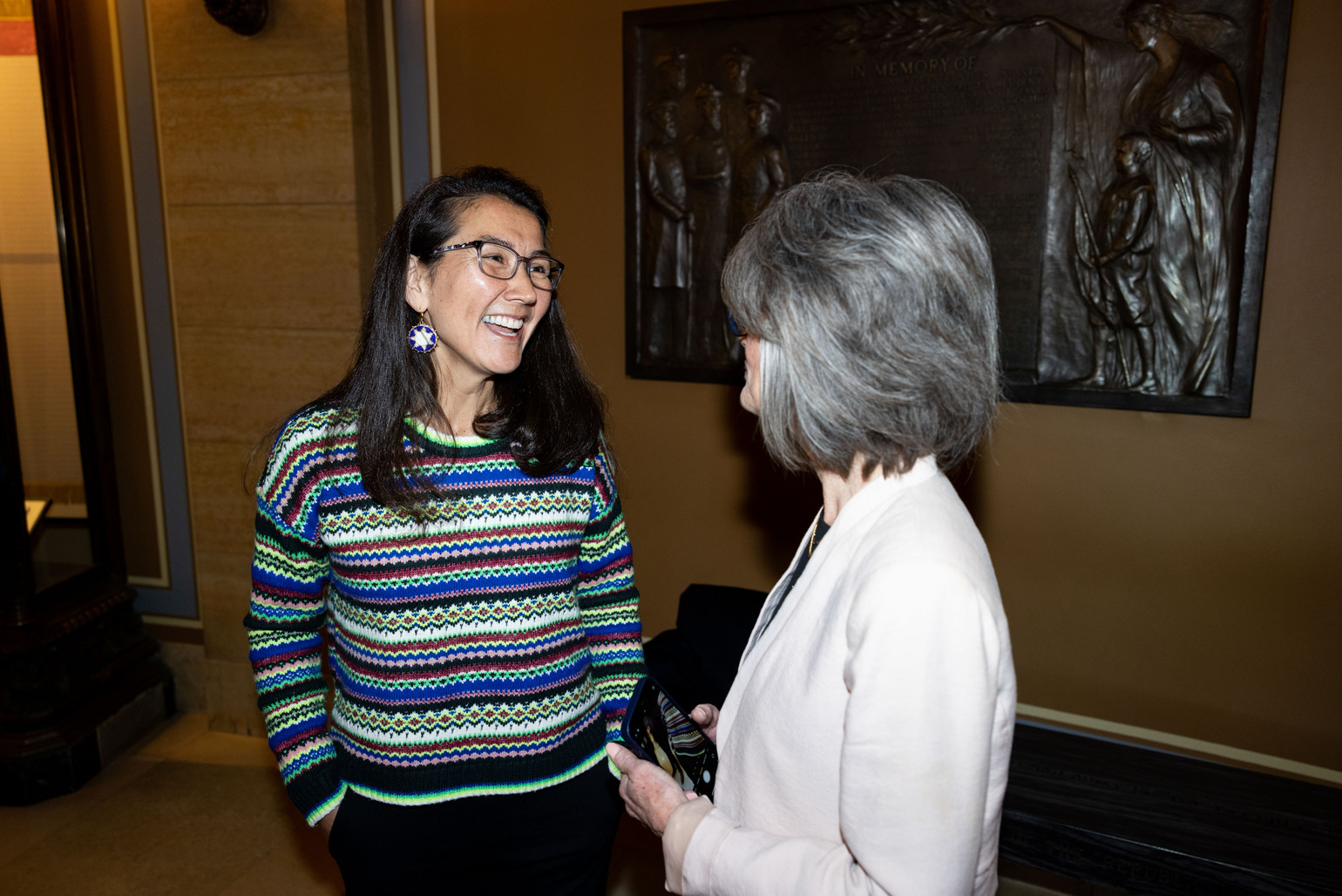 US House Representative Mary Peltola (AK) and Jeanne Massey at the MN House Elections Committee hearing. Source: Politico