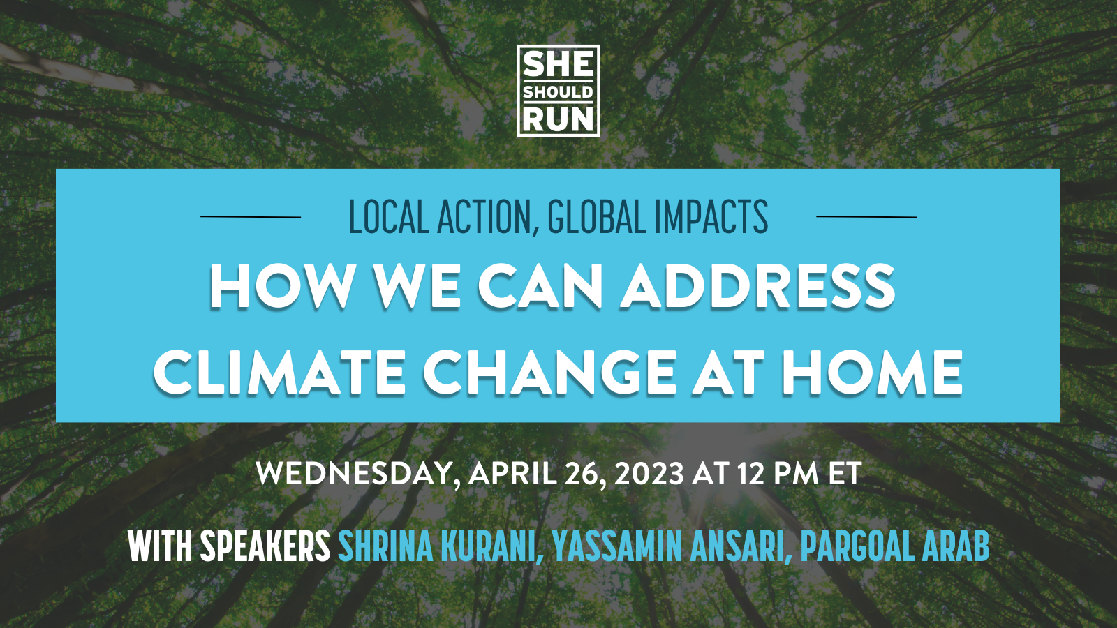 On April 26th, I’m joiningShe Should Runand a panel of women climate leaders from across the US to discuss climate change’s disproportionate impact on women and what you can do to create lasting change in your community.Registertoday!