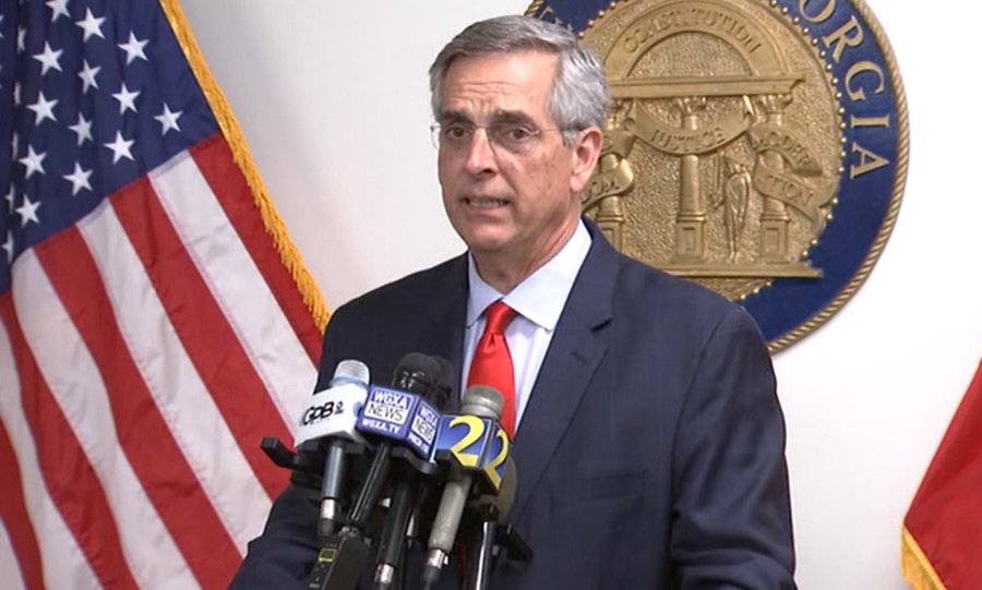 GA Sec. of State speaking to reporters about runoffs in early December.
