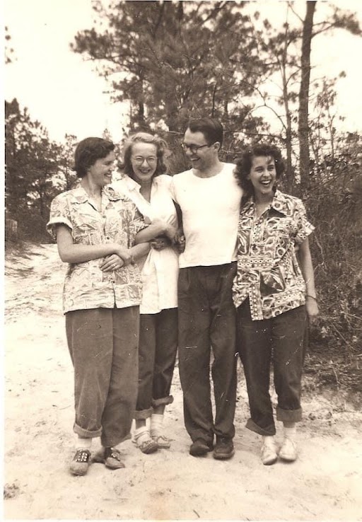 My aunts Helen, Jean & Berthamay Nicholson pictured with my father Huntington Terrell in 1950