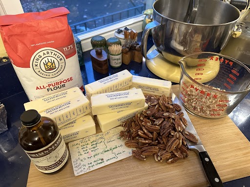 The recipe above, which calls for 10 sticks of butter (!), is from my dear aunt Helen, whose birthday was this week. She turned 12 on December 7, 1941, and would often recall walking home from Quaker Meeting along the ridge above her home in Honolulu and seeing the planes from Japan flying down to the harbor. Her family had close ties to the civilian Japanese community in Hawaii and worked hard to support them after the Pearl Harbor attack. My dear uncle Chris, Helen's husband, was sitting at lunch counters in segregated West Chester, PA with Bayard Rustin in the 1940s. Their commitment to social justice grounds my own and challenges me every day to find my own path.
