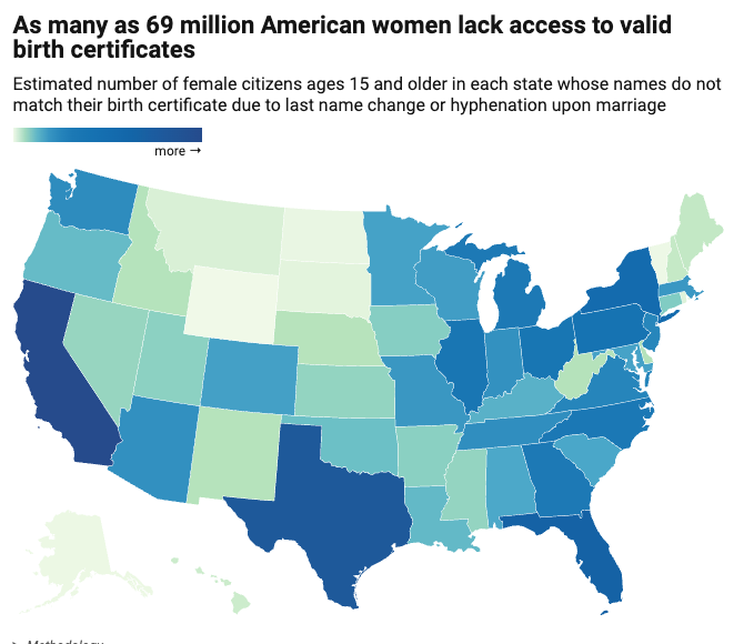 But it would also have a direct impact on anyone whose legal name does not match the name on their birth certificate or passport, such as the 79% of heterosexual married women, per Pew Research, who take their spouse’s last name. “If a married woman hasn’t paid $130 to update her passport—assuming she has one, which only about half of Americans do—she may not be able to vote in the next election if the SAVE Act becomes law,” Weiser says.