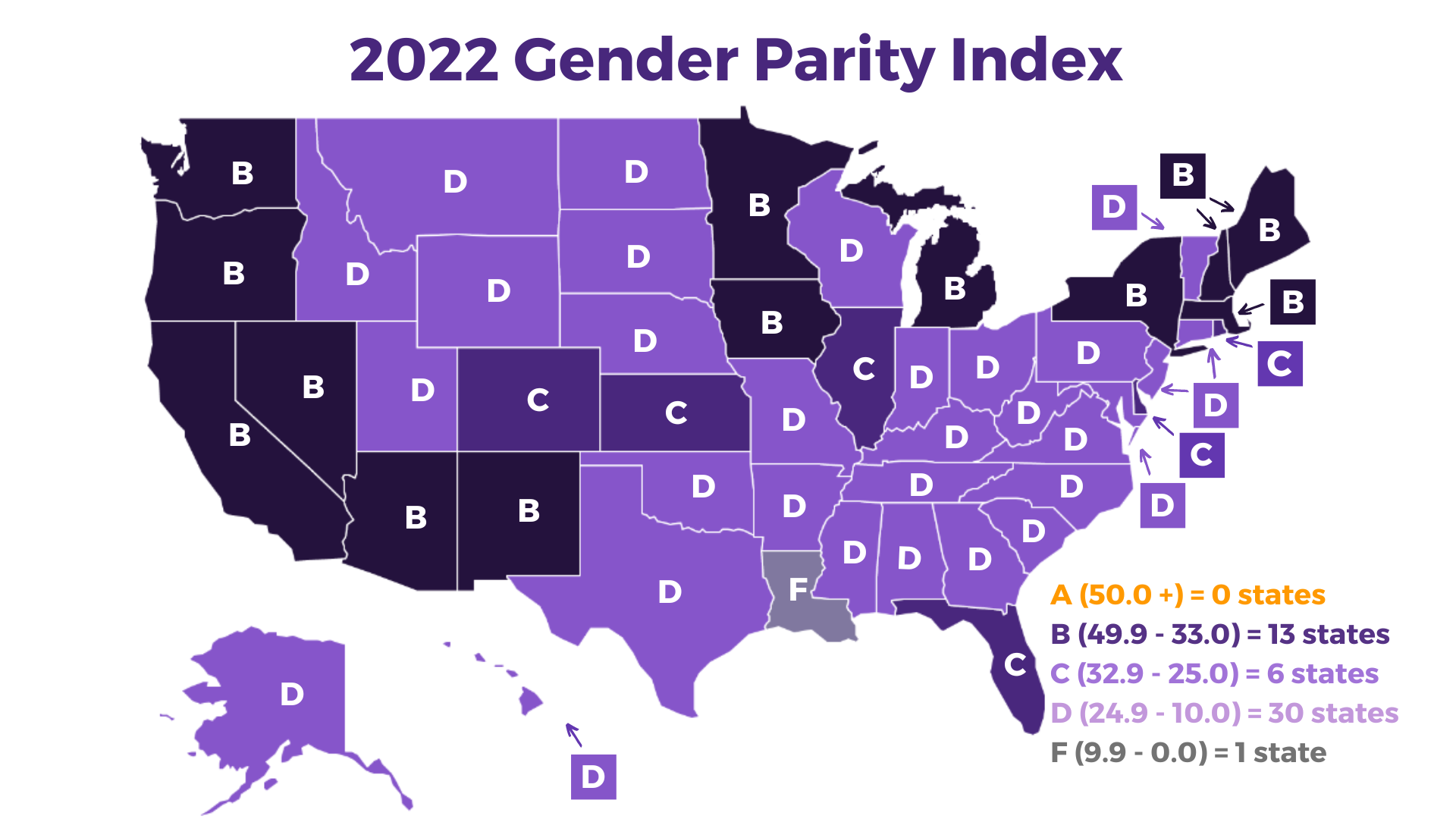 RepresentWomen’s Gender Parity Index analyzes the gender makeup of the local, state, and national levels of government in the U.S. Read the full 2022 report here(and stay tuned to our website for our 2023 report coming out later this summer!).