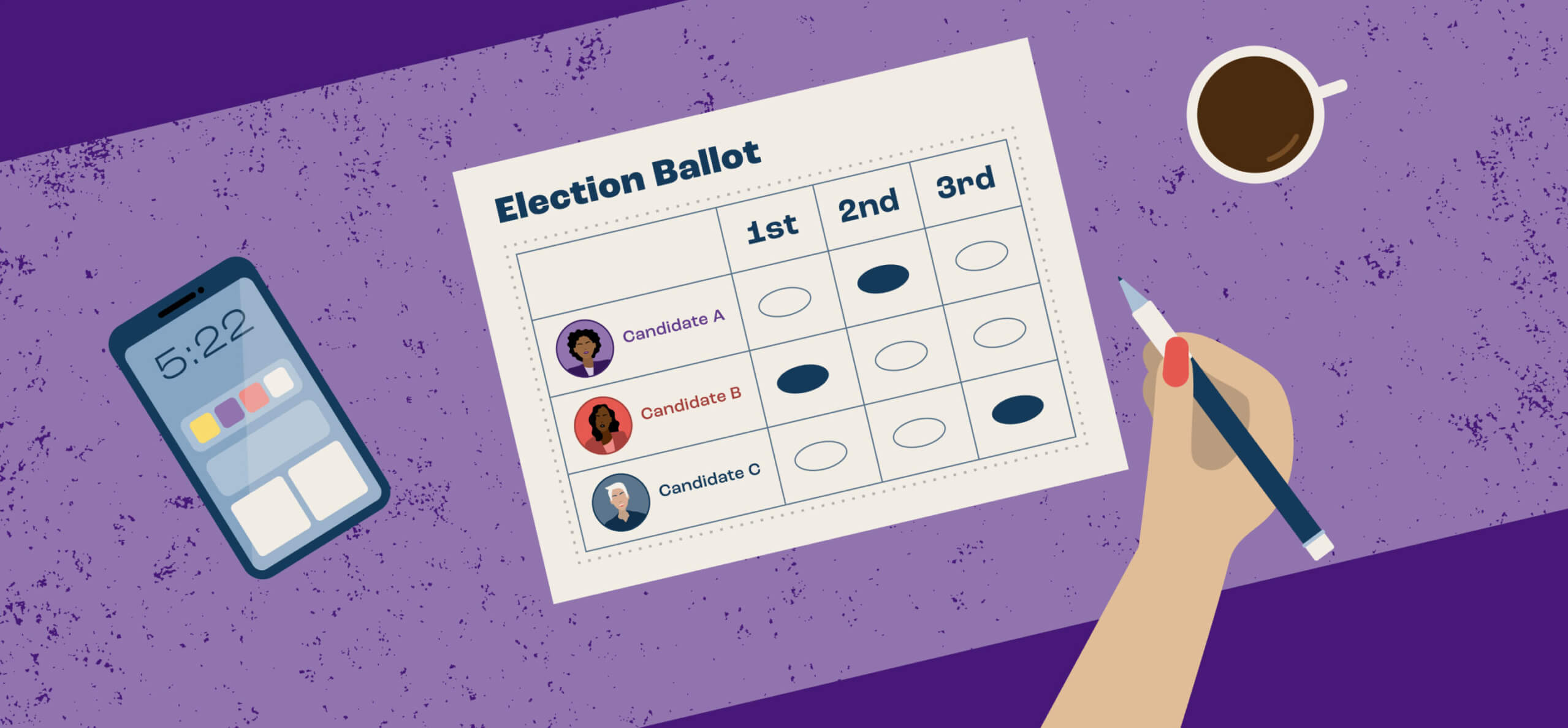Proportional RCV is a multi-winner version of RCVand is a great way to select nominees that fully represent the primary electorate. In Arlington, voters will rank up to three candidates in order of preference. For a candidate to secure a place on the general election ballot, they need 33.3% of votes – the point at which mathematically, no two other candidates can surpass their vote share.