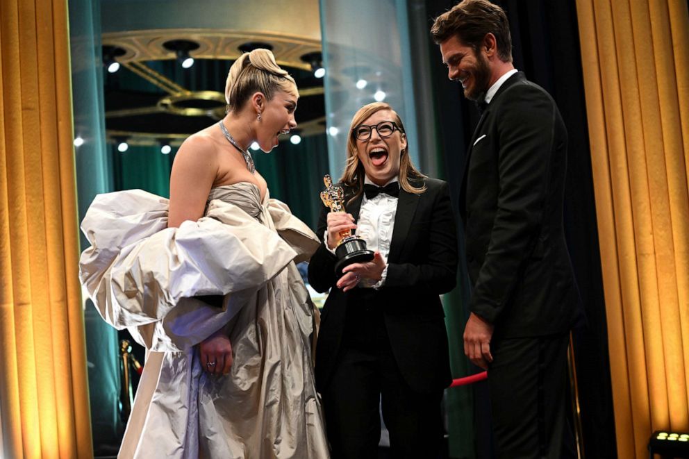 In her speech, Polley reminded the hundreds of people in the room — and the millions more watching worldwide — that the sexually abused women in her fact-based drama were taking action against their abusers “not just by talking but also by listening,” an important distinction. She might also have added that the women in her film, including characters played by Jessie Buckley, Rooney Mara and Claire Foy, ultimately resolve to not just talk but also to do something about their situation.