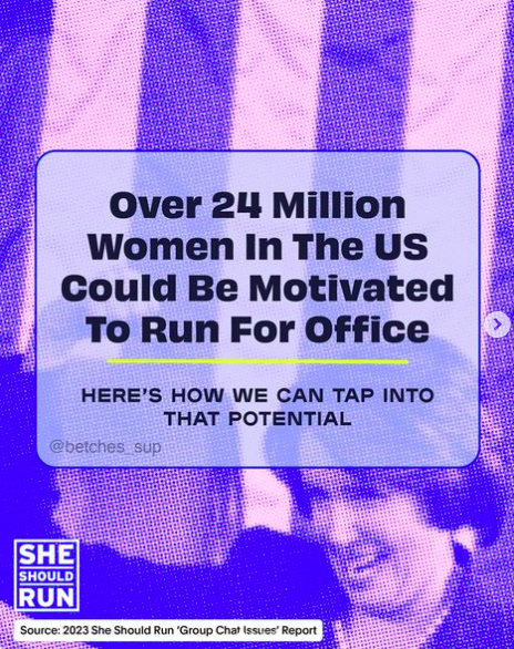 This week, our incredible partners atShe Should Run, an organization working to increase the number of women running for public office, released their 'Group Chat Issues'report that dives into what motivates women to consider running for office: