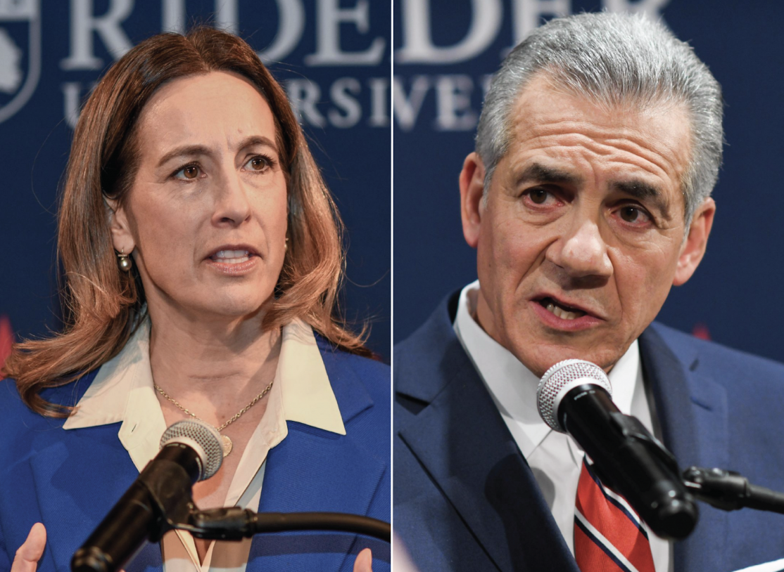 Rep. Mikie Sherrill, left, and former Assemblyman Jack Ciattarelli. Source: Kevin Sanders for the New Jersey Globe