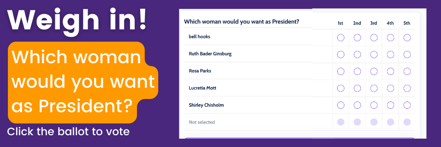 We’re working on creating a democracy where there are women leaders at every level of government a reality, but it's fun to imagine how the U.S. would be if we had a woman president in the past. Let us know which historical women leader you would have liked to see in the Oval Office! Vote here!