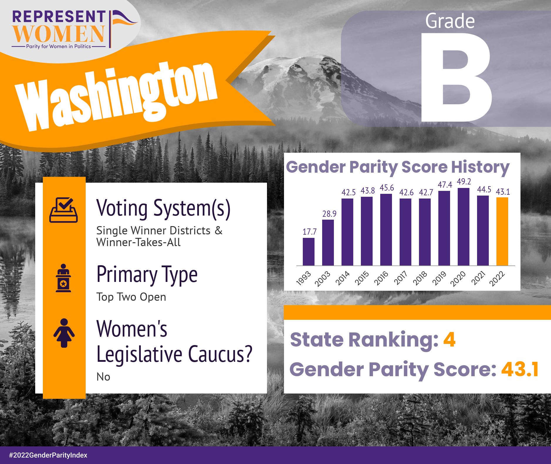 If Franz were to win the gubernatorial election, a woman would need to replace her as Commissioner of Public Lands for representation to increase for statewide elected offices. Though WA was one of the highest-ranking states in our2022 Gender Parity Index, whoever becomes the new governor should commit to appointing a gender-balanced cabinet.