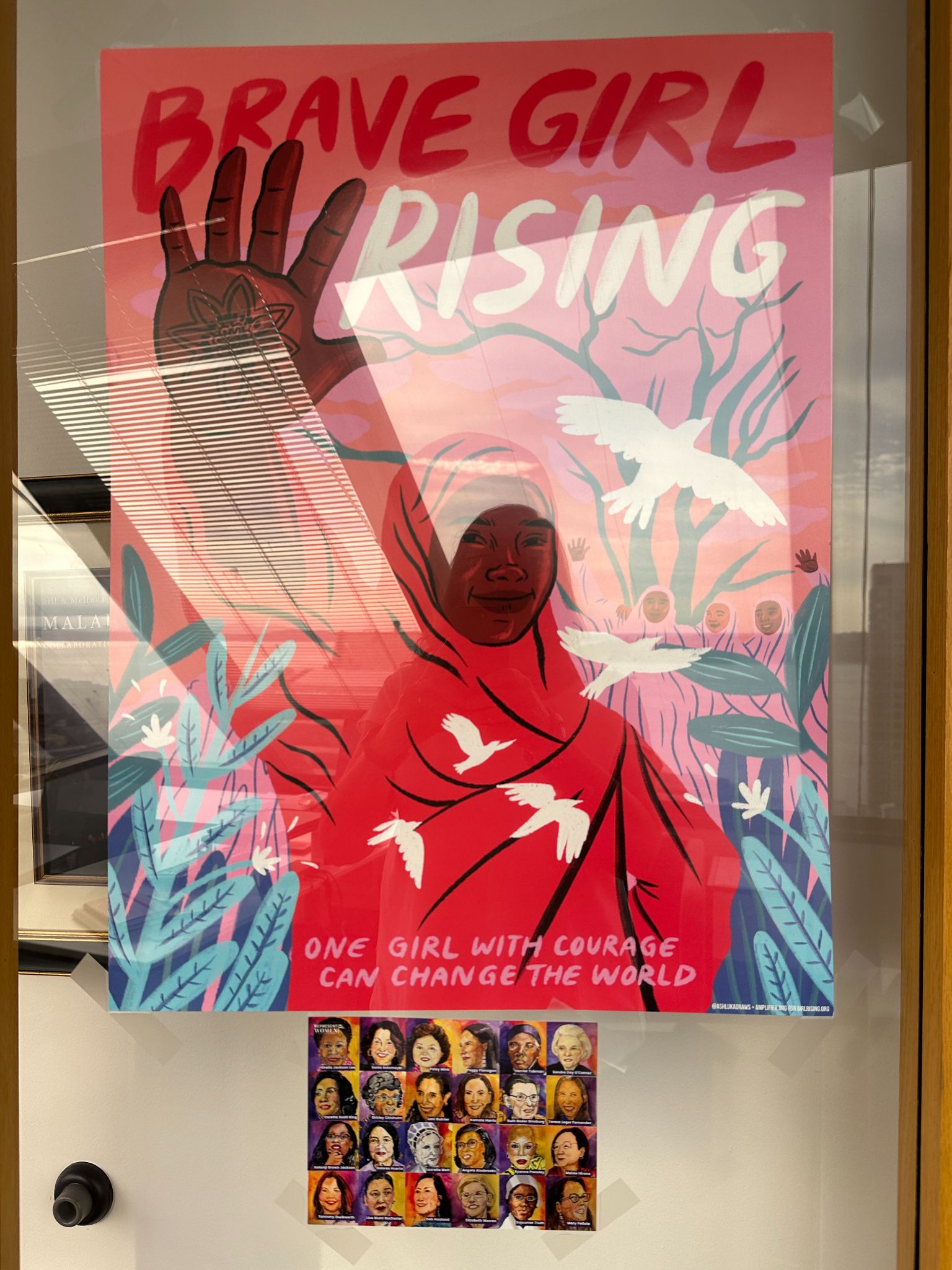 P.S.It was fun to see that Gabrielle had a RepresentWomen postcard of women leaders, painted by my dear friend Melanie Humble, on the door of her office below this beautiful poster!