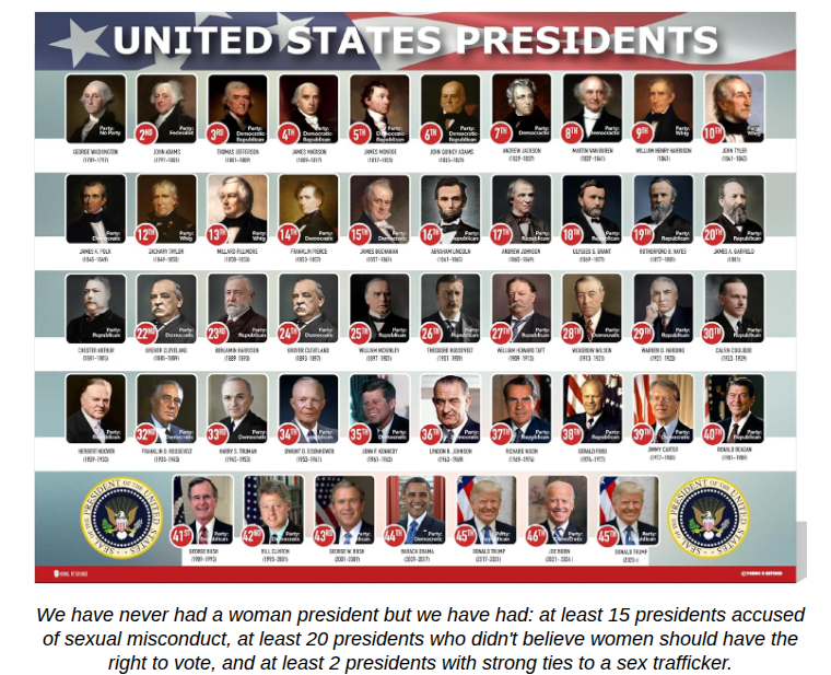 “There are qualified, brilliant women in this country who are just waiting in the wings to bring about real change. The would-be female presidents who have been waiting far too long for their turn to lead. Policymakers who, perhaps, haven’t been recorded bragging about grabbing women by the genitals or appeared to be best friends with the most notorious sex trafficker in modern history… We believe these women are out there.