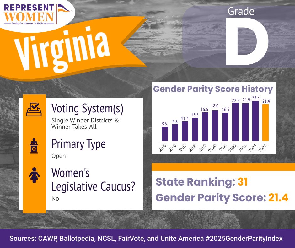 According to RepresentWomen’s Gender Parity Index, this milestone could raise Virginia’s parity score by nearly ten points, moving the state from a “D” to a “C.” Change at the top reverberates throughout the system, influencing appointments, pipelines, and future candidacies.