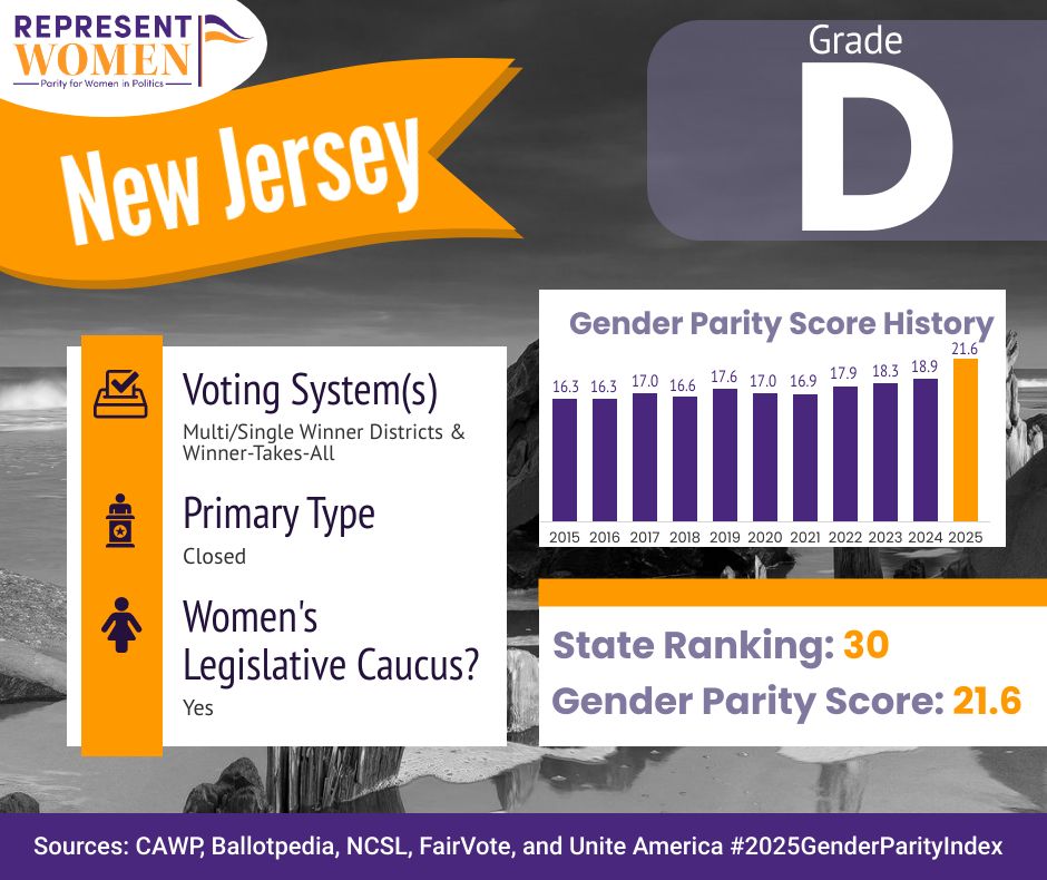 A win by Sherrill could also lift New Jersey’s Gender Parity Index score for the first time in decades, moving the state closer to parity and breaking the “D” grade it has held since 2003. Together, these gains would signal meaningful progress in women’s executive and legislative representation, demonstrating how structural change and sustained pipelines work in tandem.