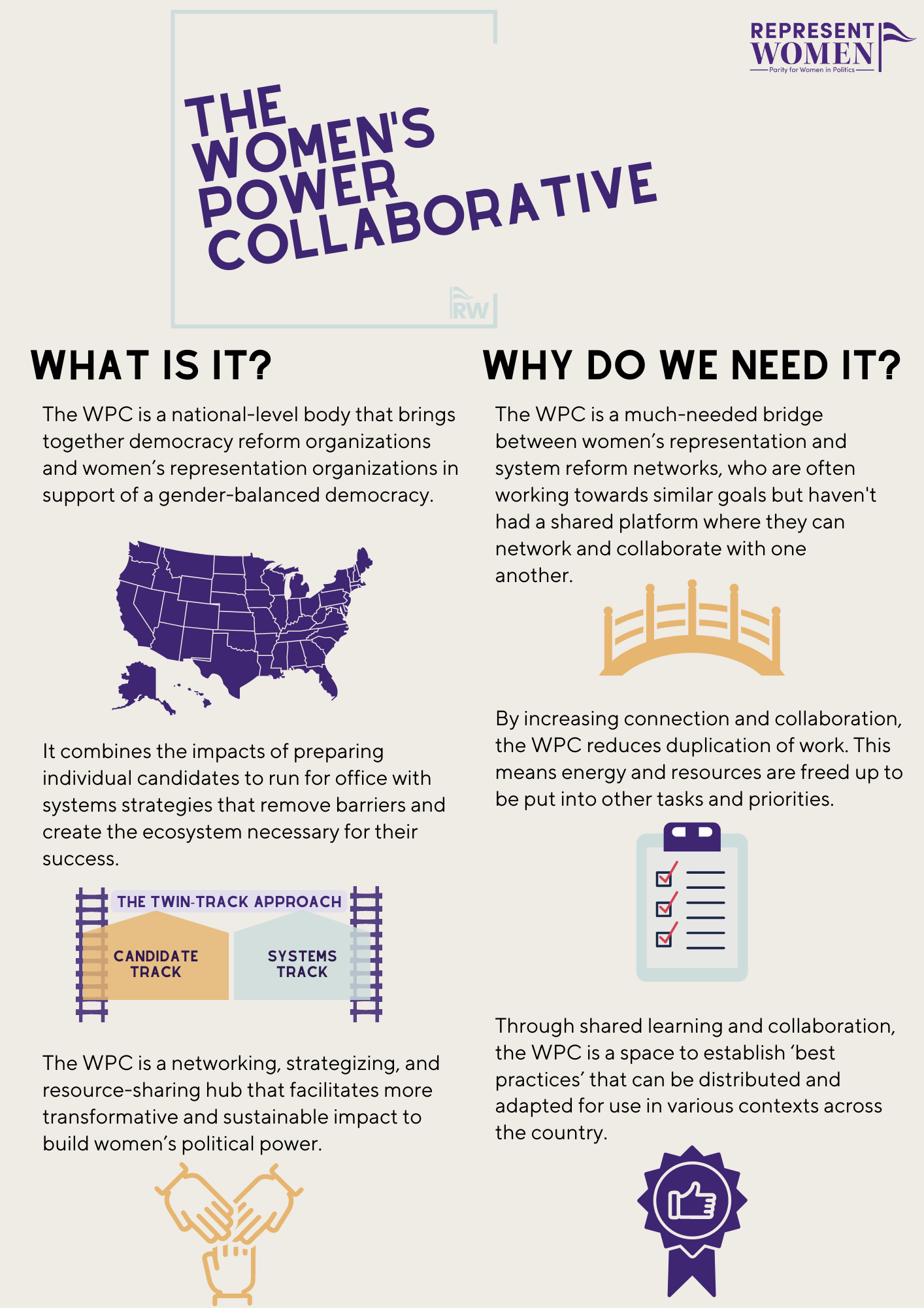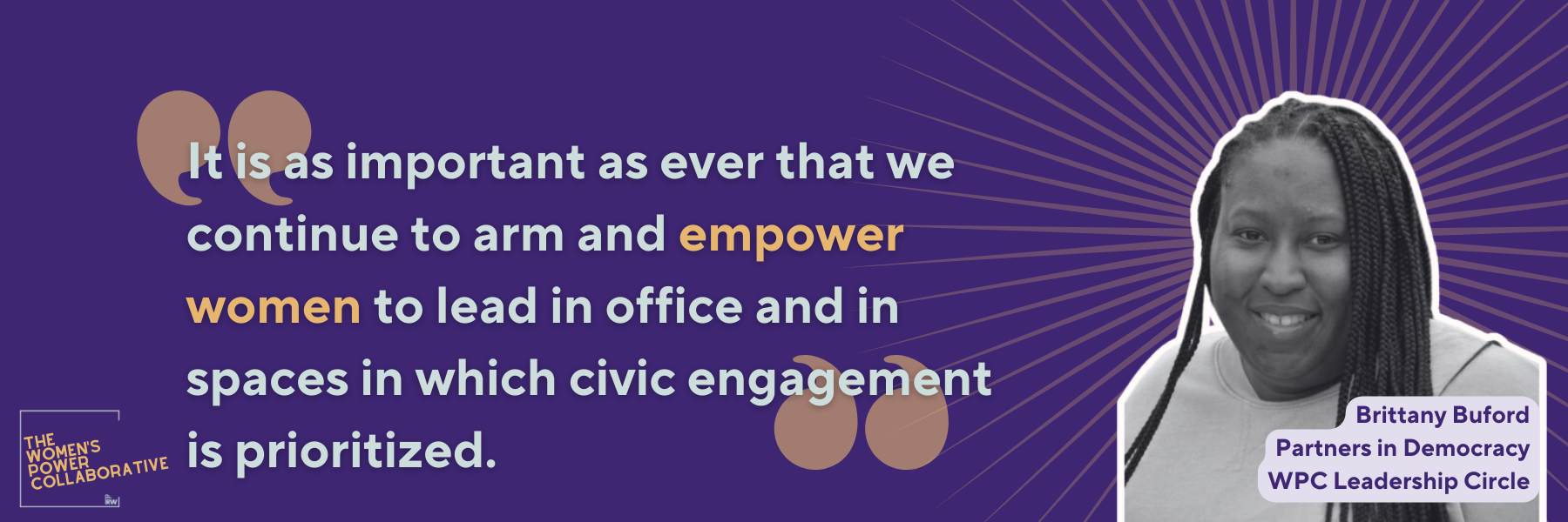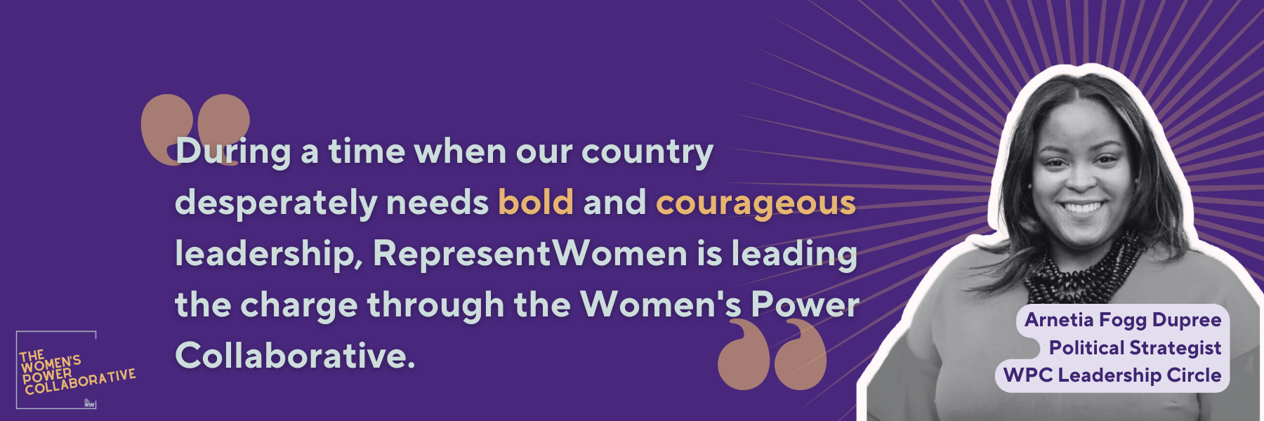 The WPC is a networking, strategizing, and resource-sharing hub that pairs preparing individual candidates to run for office with systems strategies that remove barriers and create the ecosystem necessary for their success. The Women’s Power Collaborative fills an important gap in the women’s representation space and will facilitate a more transformative and sustainable impact to build women’s political power.