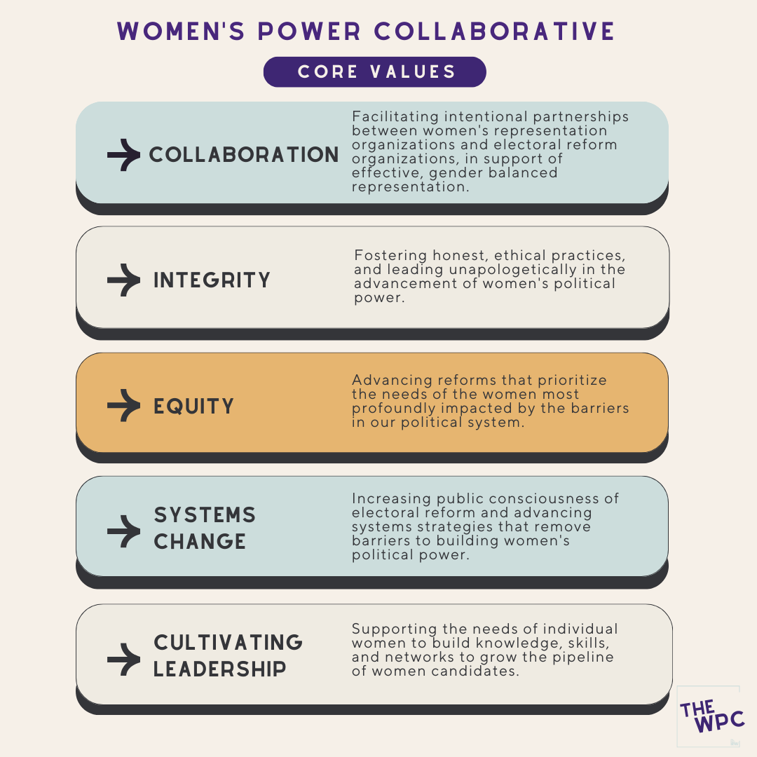 Our Leadership Circle developed a list of fundamental principles that are woven into the framework of the Women’s Power Collaborative. The diverse, cross-partisan nature of this Collaborative is our strength, and in our collective effort to create a more representative democracy, we agree on the following core values: