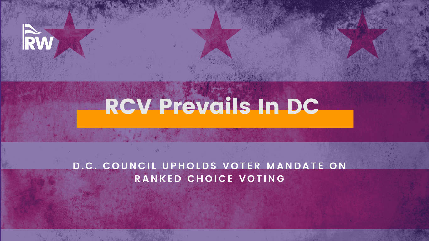 We are grateful to our partners on the ground, including Grow Democracy DC, whose leadership and sustained advocacy have helped ensure that ranked choice voting is implemented as voters intended. As Grow Democracy DC Co-founder and CEO Lisa D. T. Rice shared following the vote:
