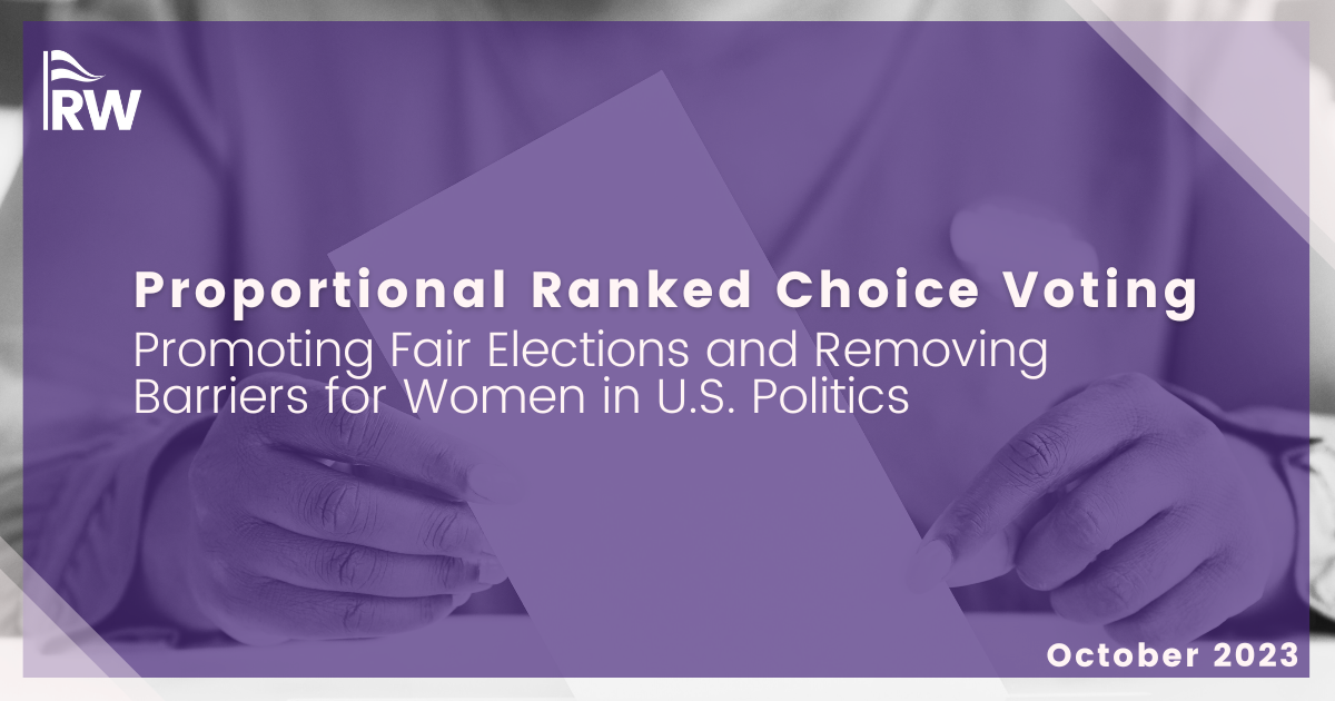 RepresentWomen researches and advances the best practices for reaching gender-balanced governance in the U.S. Our research shows that voting systems shape the opportunities women have to run for office and get elected. This brief is part of an ongoing series updating our research on voting systems in the U.S. and the impact different systems have on women’s political representation. Previous installments in this series covered voting systems around the world and the impact of ranked choice voting (RCV) on women’s representation. The following brief covers how proportional ranked choice voting (PRCV) works, the history of PRCV in the United States, the issues with our current plurality/winner-take-all (WTA) system, and why PRCV is a good fit for our candidate-driven system to advance women’s political representation in the U.S.