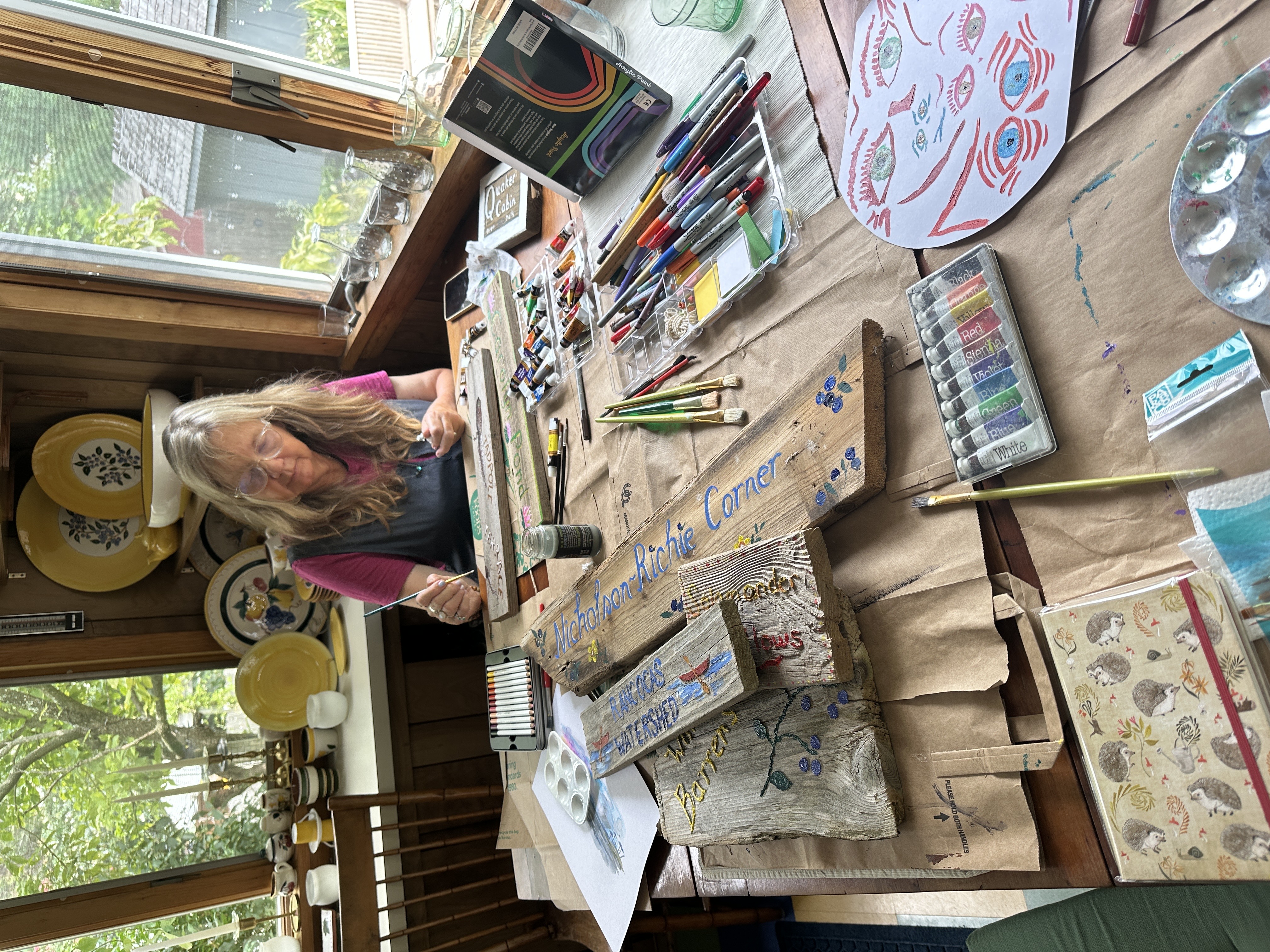 My dear friend, Melanie Humble, depicted working on her art 🎨