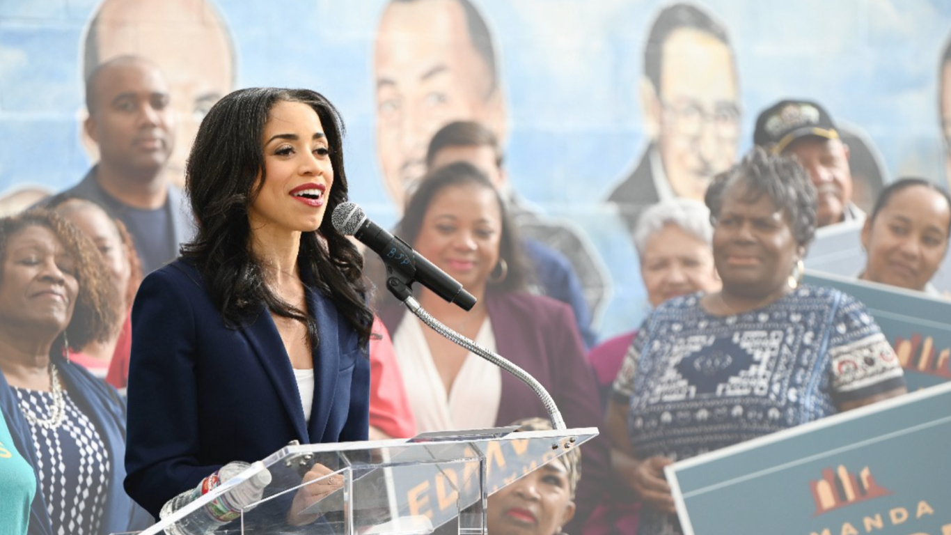 Amanda Edwards speaking at a campaign event in Houston, Texas. Source: Edwards For Houston