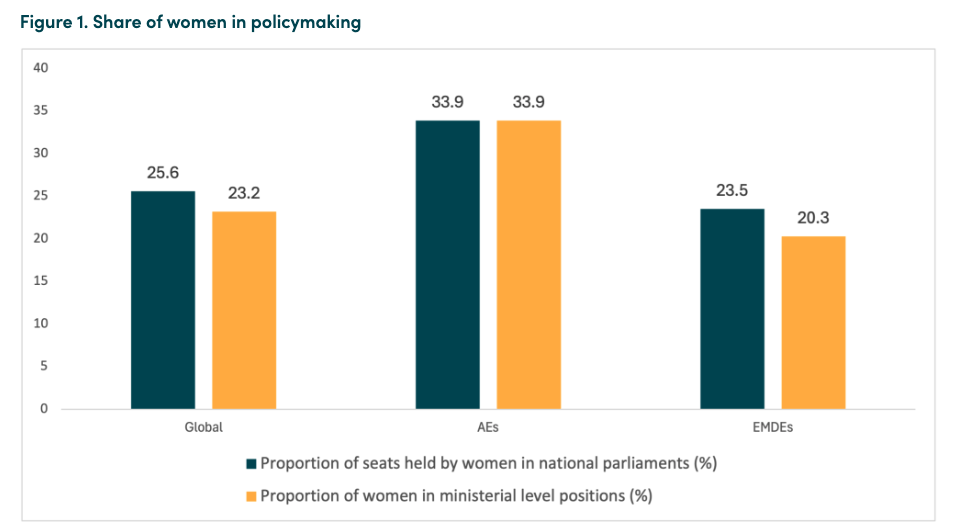 … Looking forward, the modest outlook for global economic growth, high levels of public debt, rising military spending, and declining foreign aid will limit the scope of EMDEs to spend on education and health. Against this backdrop, creative solutions to improving social outcomes are needed. Appointing or electing women to top political positions may help forge the political coalitions needed to reprioritize public spending and improve socioeconomic outcomes.